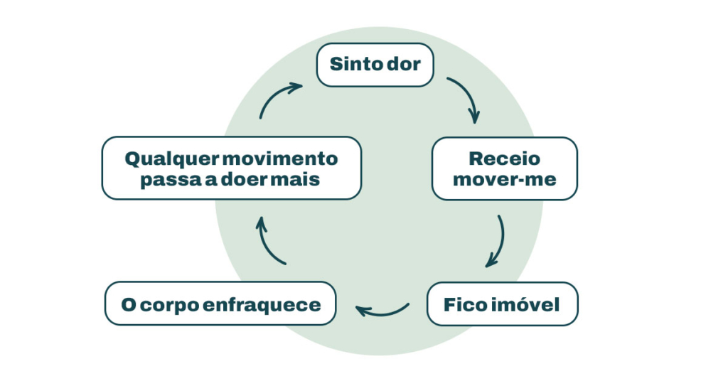O cérebro torna-se mais sensível à dor. Quanto mais tempo se permanece imóvel por receio, mais o sistema nervoso “aprende” a interpretar qualquer estímulo naquela zona como uma ameaça. O limiar de tolerância baixa progressivamente.